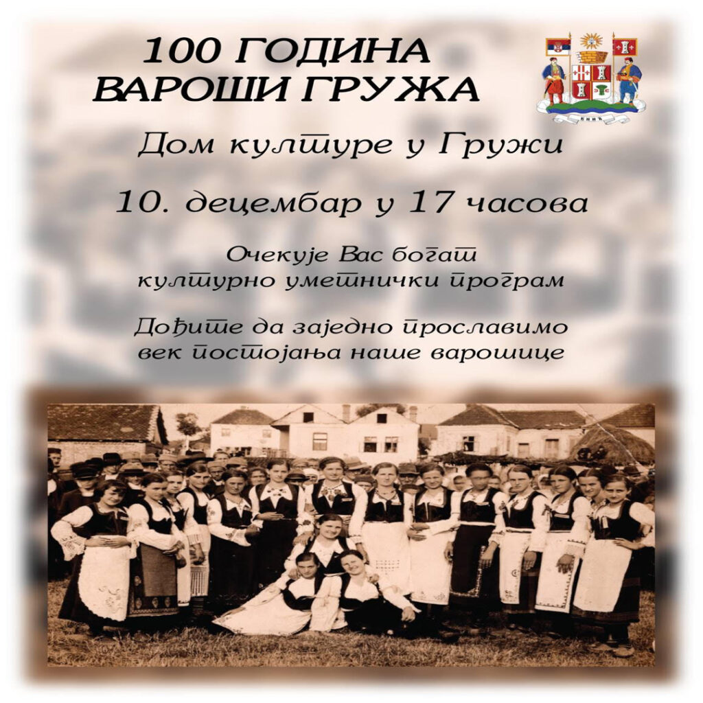 Pre 100 godina, 22. novembra 1922, ukazom Kralja Aleksandra I Karađorđevića selo Grabovac sa zaseokom Slepak u srezu gružanskom, okrugu kragujevačkom, proglašen je varošicom pod imenom Gruža. U okviru umetničkog programa koji će povodom proslave ovog događa biti priređen u renoviranom Domu kulture u Gruži, planiran je prikaz razvoja varošice kroz ovaj period, kaže Marija […]