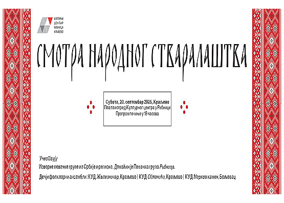Десета смотра народног стваралаштва, која негује изворну српску песму, чува културно наслеђе, традицију и идентитет нашег народа, биће одржана 20. септембра у Краљеву. Манифестација окупља одабране извођаче из Србије, пружајући публици прилику да ужива у изворној песми и традиционалном плесу. Поред изворних певачких група, сутра ће наступити и дечји фолклорни ансамбли из Краљева, а гости […]