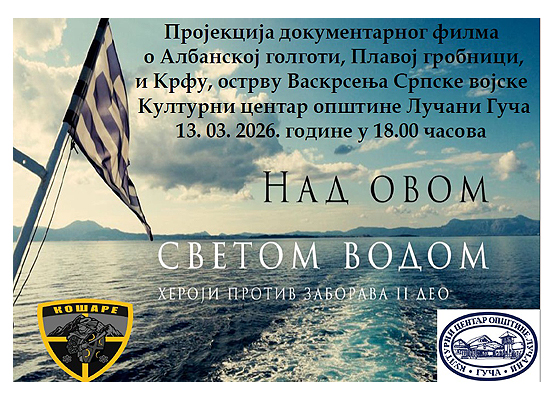 Документарни филм „Хероји против заборава 2 – Над овом светом водом” биће приказан у петак, 13. марта, у Културном центру општине Лучани у Гучи. Филм доноси причу о страдању, истрајности и храбрости српског народа у Великом рату. Подсећа на борце који су, после Албанске голготе и опоравка на Крфу, наставили пут ка ослобођењу отаџбине, преко […]