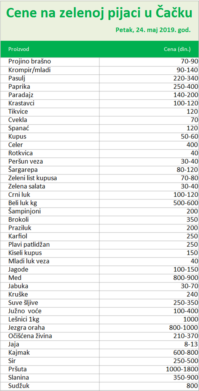 Dobra ponuda na čačanskim pijacama