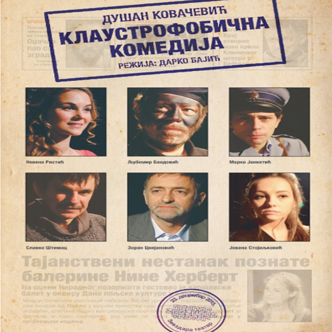 U Kulturnom centru Čačak večeras će biti izvedena pozorišna predstava pod nazivom „Klaustrofobična komedija“, u produkciji Zvezdara teatra.