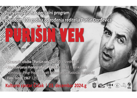 Поводом 100 година од рођења Пурише Ђорђевића, у понедељак 23. децембра у Културном центру Чачак биће одржан програм посвећен овом прослављеном српском редитељу и сценаристи.