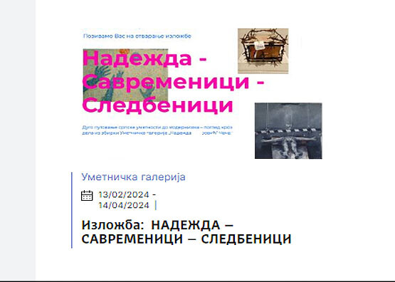 НАДЕЖДА – САВРЕМЕНИЦИ – СЛЕДБЕНИЦИ: Дуго путовање српске уметности до модернизма