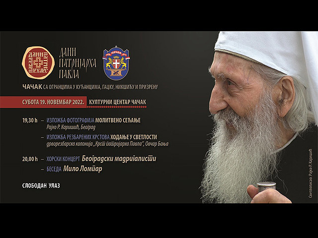 Završna svečanost ovogodišnje manifestacije „Dani patrijarha Pavla“, biće održana u subotu 19. novembra u čačanskom Domu kulture.
